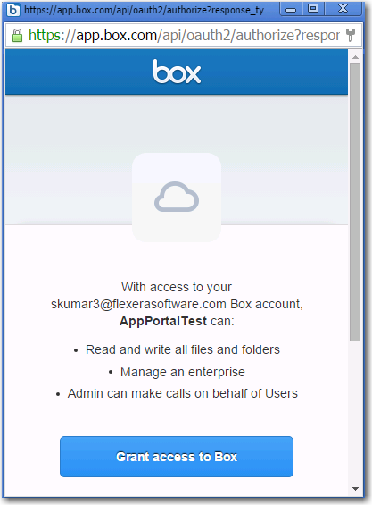 7. Enter your user ID and password to the cloud application. You are then prompted to grant access to the cloud application.