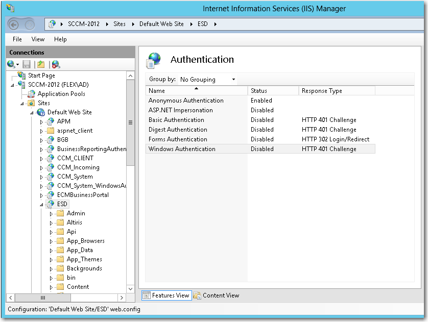 - Open IIS Manager and select the ESD virtual directory under Sites in the tree.