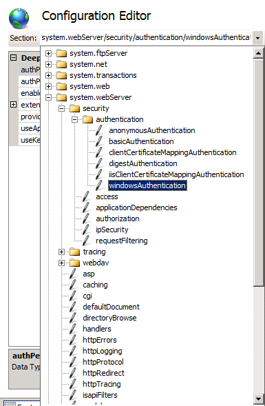 windowsAuthentication(which is undersystem.webServer > security > authentication).